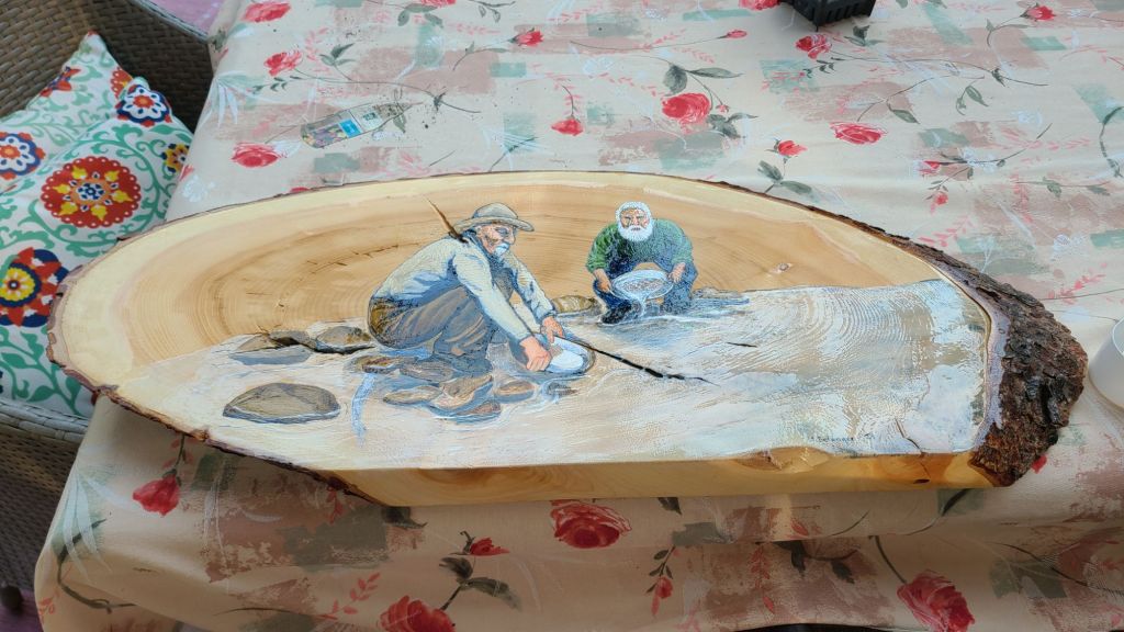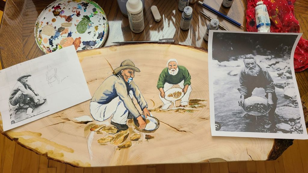 There’s something about painting a black and white photo into colour. Trying to choose colours that won’t seem ridiculous in the context of the painting. It’s a challenge but was enjoyable. I like the end result.